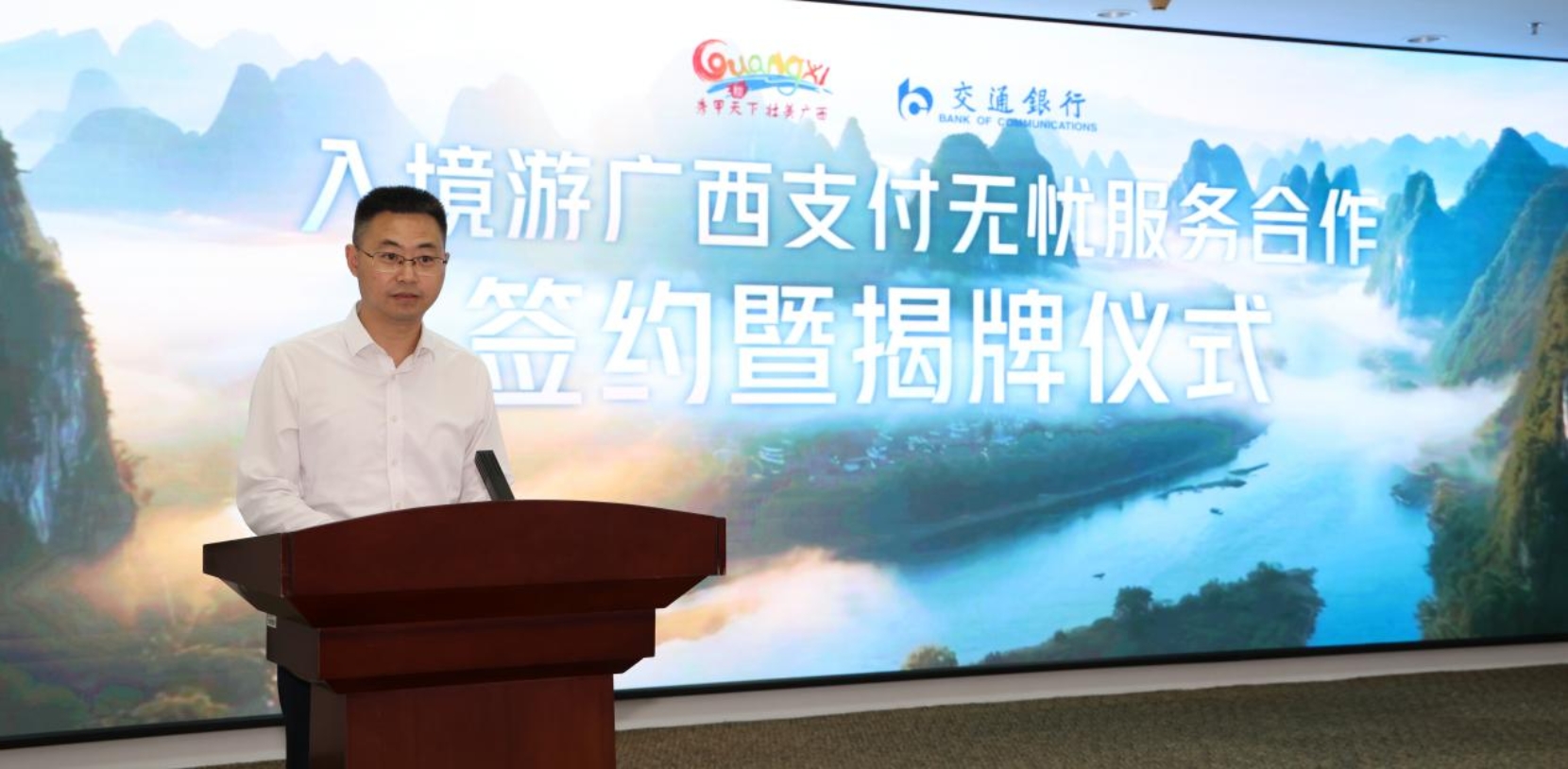 随后,自治区文化和旅游厅与交通银行广西区分行就入境游广西支付无忧服务合作进行签约,并为交通银行桂林分行营业部“GX-TravelEase Bank+”旅游金融服务网点揭牌。